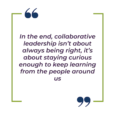 It is a natural response to not be open to feedback. Recognizing that can help people in a collaboration learn to give and receive criticism in ways that encourage reflection rather than resistance. In the end, collaborative leadership isn’t about always being right, it’s about staying curious enough to keep learning from the people around us.